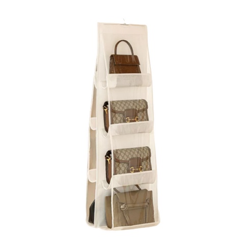 Si estás cansada de ver tus bolsos tirados por los rincones, apilados o arrugados dentro del armario, el Perchero Organizador de Bolsos con 8 Compartimentos es la solución perfecta para ti.